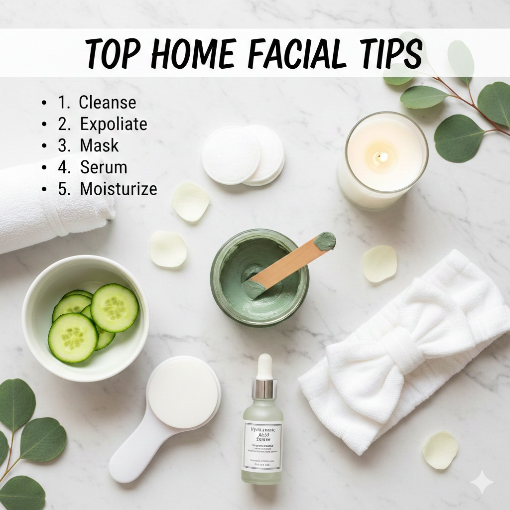 By following these top home facial tips: